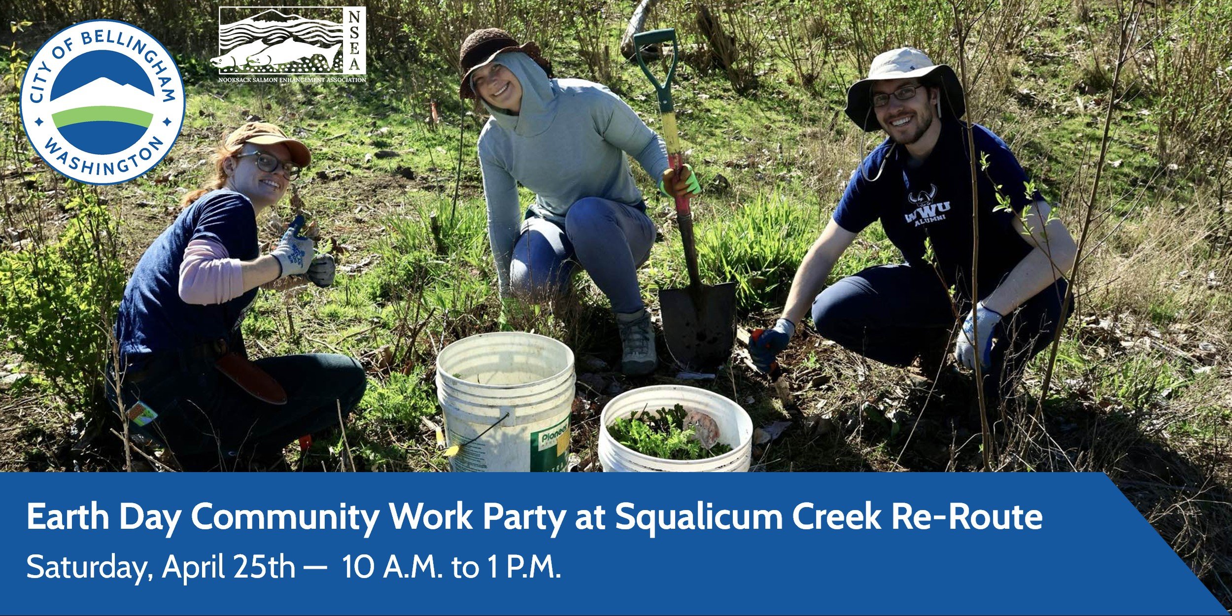 Celebrate Earth Day alongside more than 1 billion people worldwide by joining the City of Bellingham and other community partners for our annual Earth Day Community Work Party on Saturday, April 25th from 10 a.m. to 1 p.m. at Squalicum Creek Re-route.
